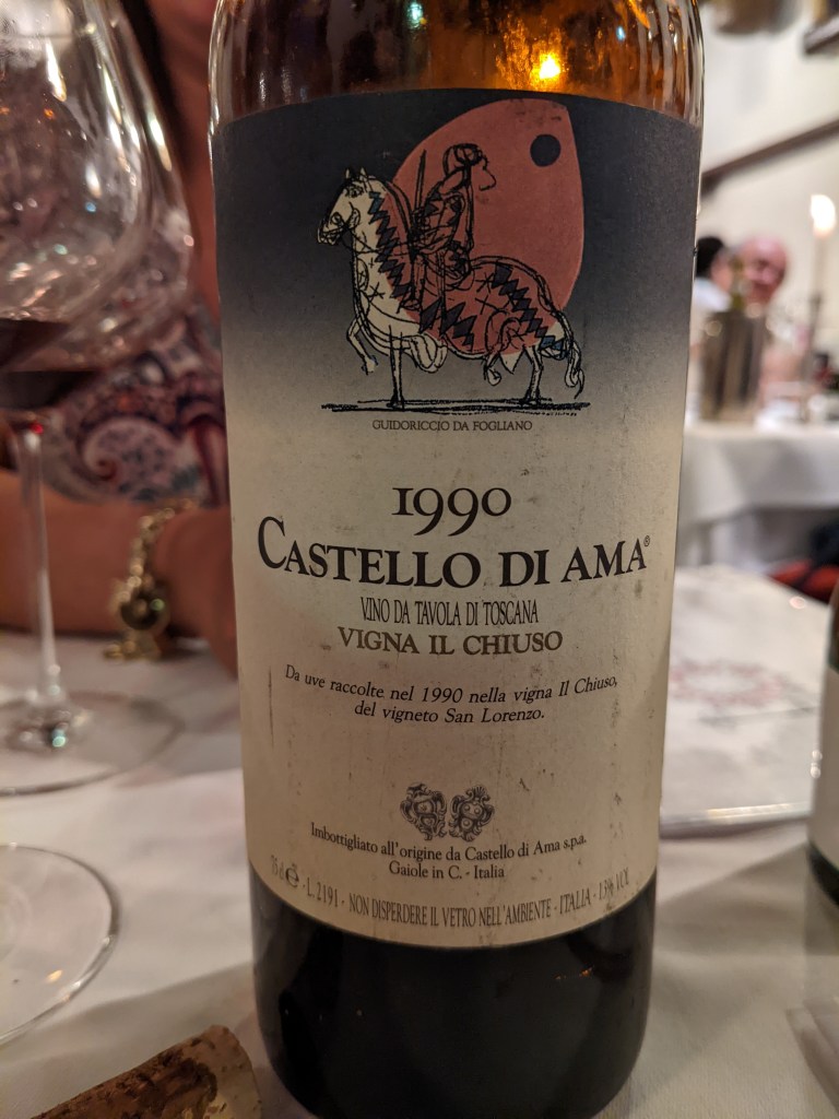 Eagle-eyed Shawna noted the waiter began the decanting process by first pouring himself a glass (or as I later called it, “his tip”), and once decanted, we enthusiastically enjoyed the rest while inhaling crisp salads and two amazing pasta dishes. Wanting to justify the bottle’s price tag, I sent the picture of the label to wine enthusiast, Jim Wagner, who informed me the bottle’s value was almost solely due to its age. Apparently, we paid big Euros for the equivalent of a 32-year old bottle of Barefoot Merlot.