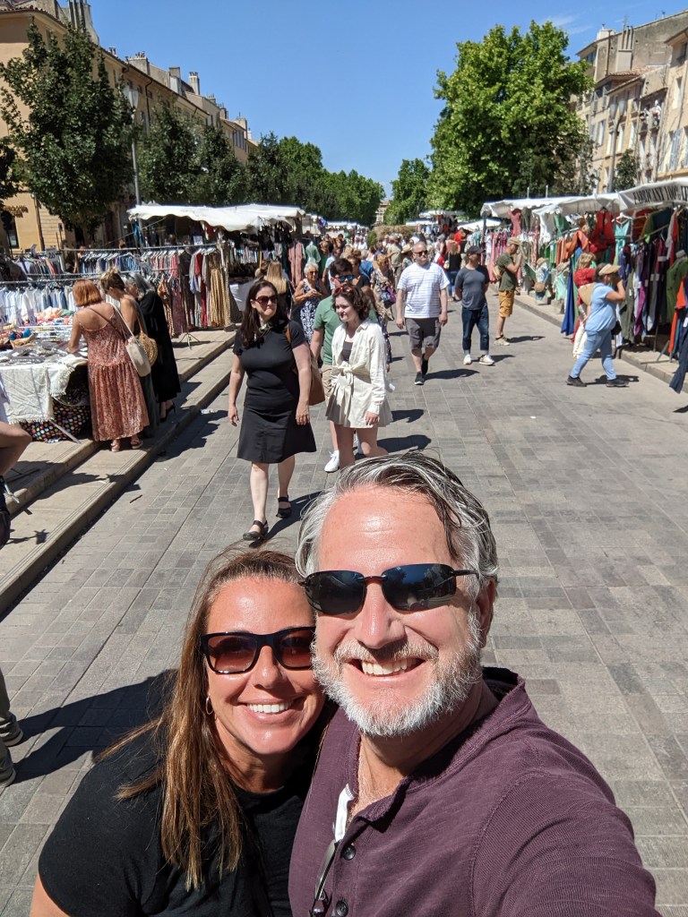 We chose not to visit this church, or anything in Marseille for that matter, choosing instead to head inland to the town of Aix-en-Provence. As luck would have it, we were visiting on a Tuesday – which is market day!