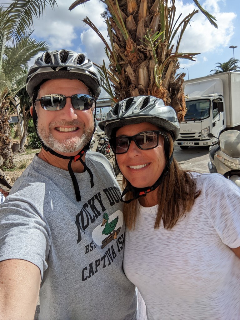 Today, Friday, we woke up on the island of Mallorca in the town of Palma. The island is off the coast of Spain, and Palma exists primarily for tourism – at least according to our local guide on this morning’s biking tour.