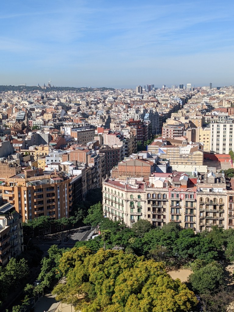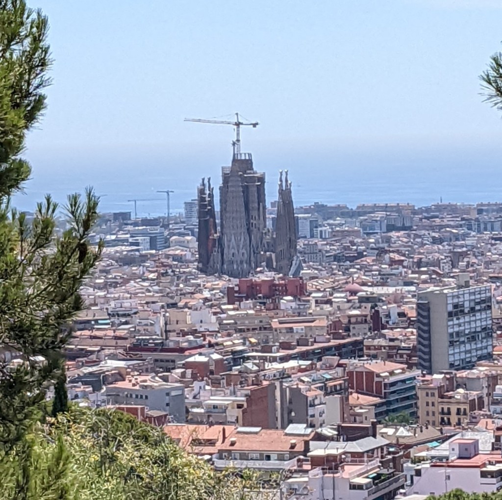 and snaked with trails affording delicious views of the city, including the Sagrada Familia – illustrating clearly its immense size, dwarfing the neighborhoods around it.