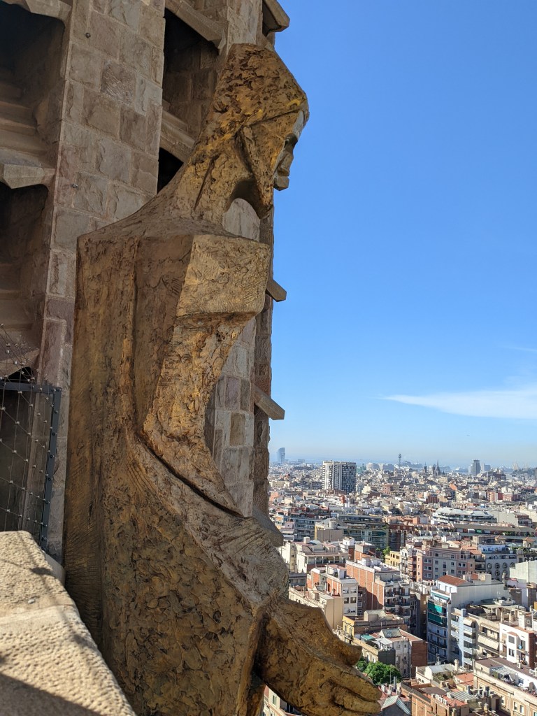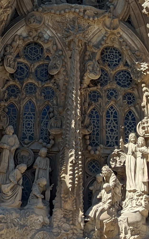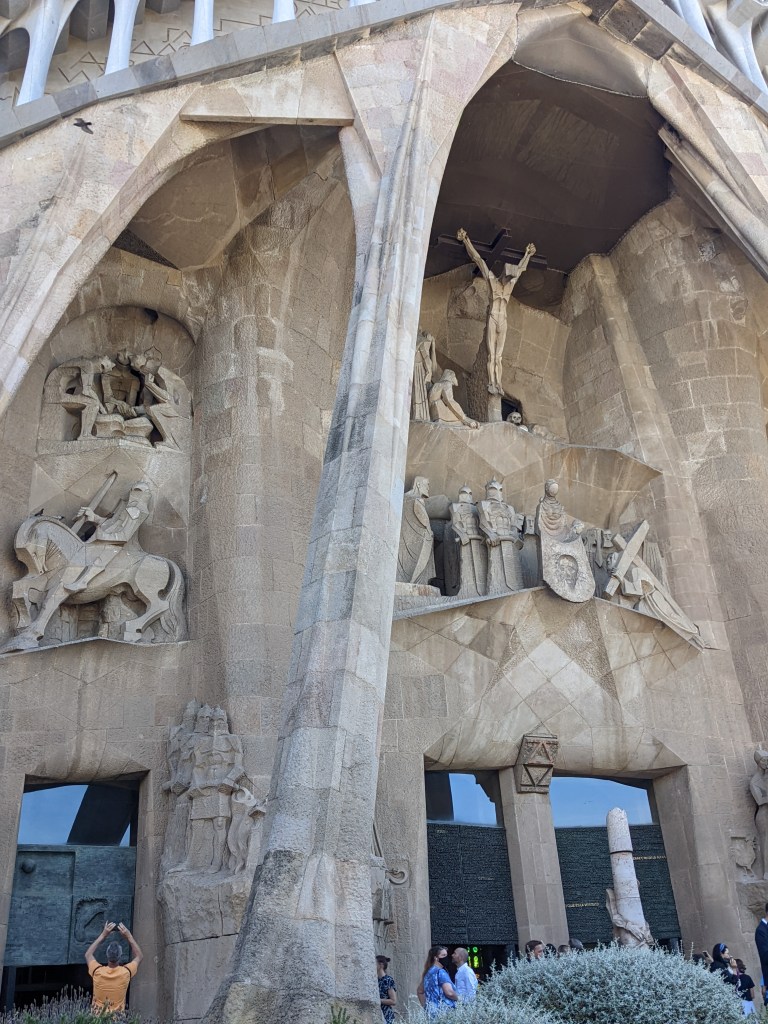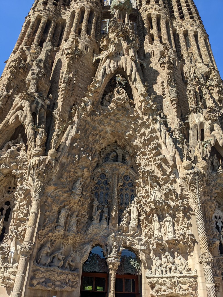 Two important facts about this view. First, as you’ll soon see, Gaudi wanted to keep the inside of the cathedral largely free of statues, so he put them on the outside instead. And there are many!