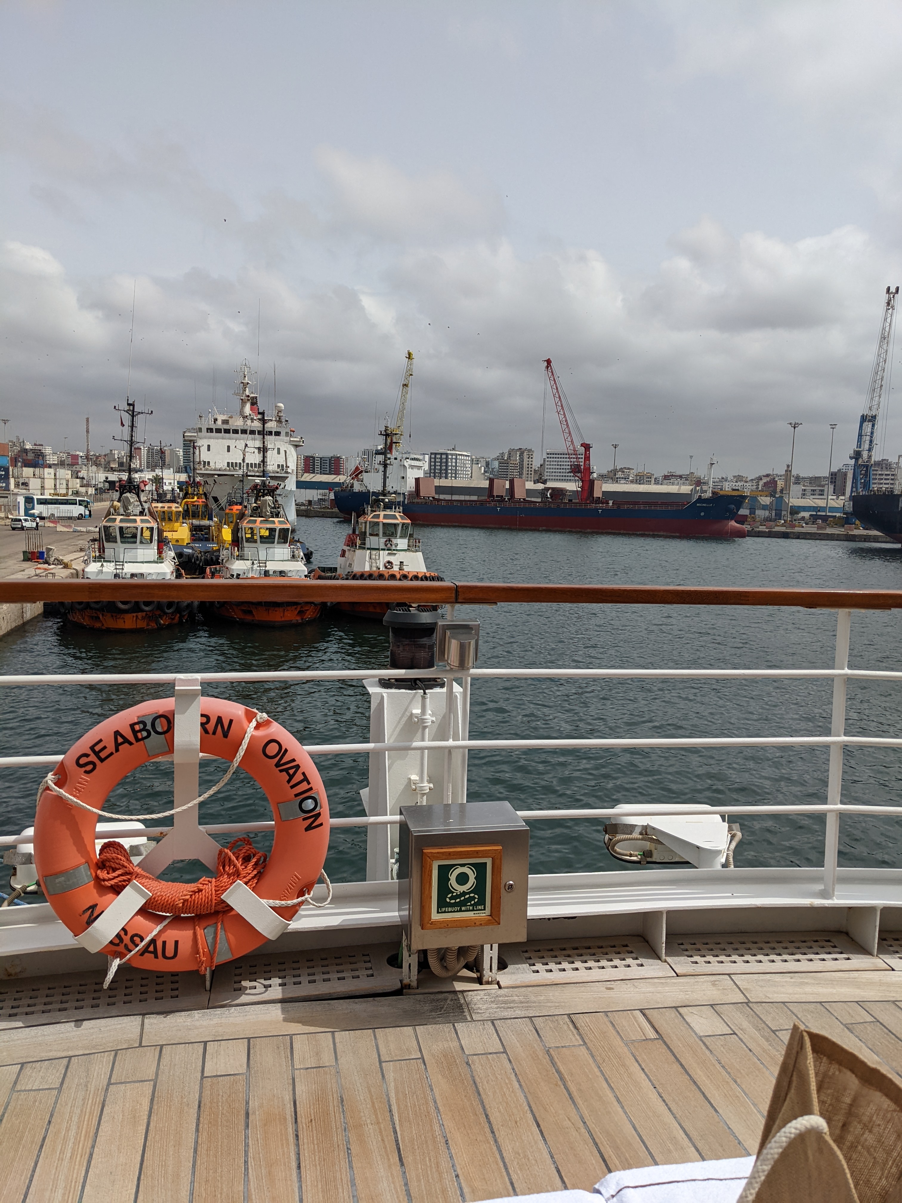 First, instead of getting a first-hand view of the Moroccan countryside, all the way to the great Sahara Desert, we got this lovely view of the port.